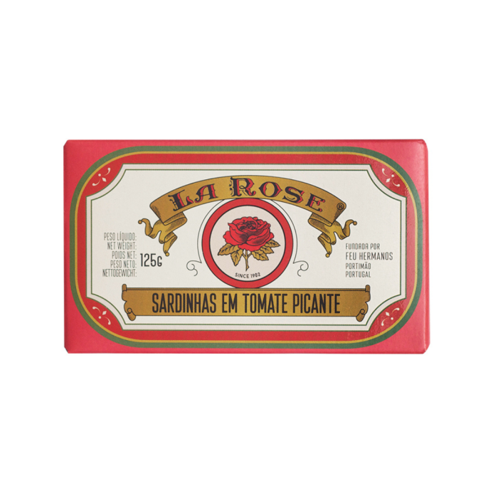 LA ROSE SARDINE IN SOS ROSII Ingrediente: sardine 65%, apa, rosii 12% ulei de masline ardei iute piri-piri, sare. Valori nutritionale 100gr: Energie 206 kcl/864 KJ Grasimi 11gr din care acizi grasi saturati:3,5 g Carbohidrati 0,7 g, din care zaharuri 0 g Proteine:19 g Sare 0,74 g. Importat de www.conservas.ro ZAZAR PROJECT SRL. Greutate neta: 125g Greutate drenata: 88g Depozitati la temperature camerei, dupa deschidere pastrati in frigider