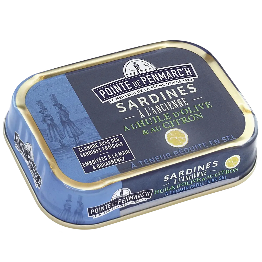 SARDINE, ulei de măsline extravirgin, lămâie (4%). Sardine pescuite în nord-estul Oceanului Atlantic și debarcate în Bretania.